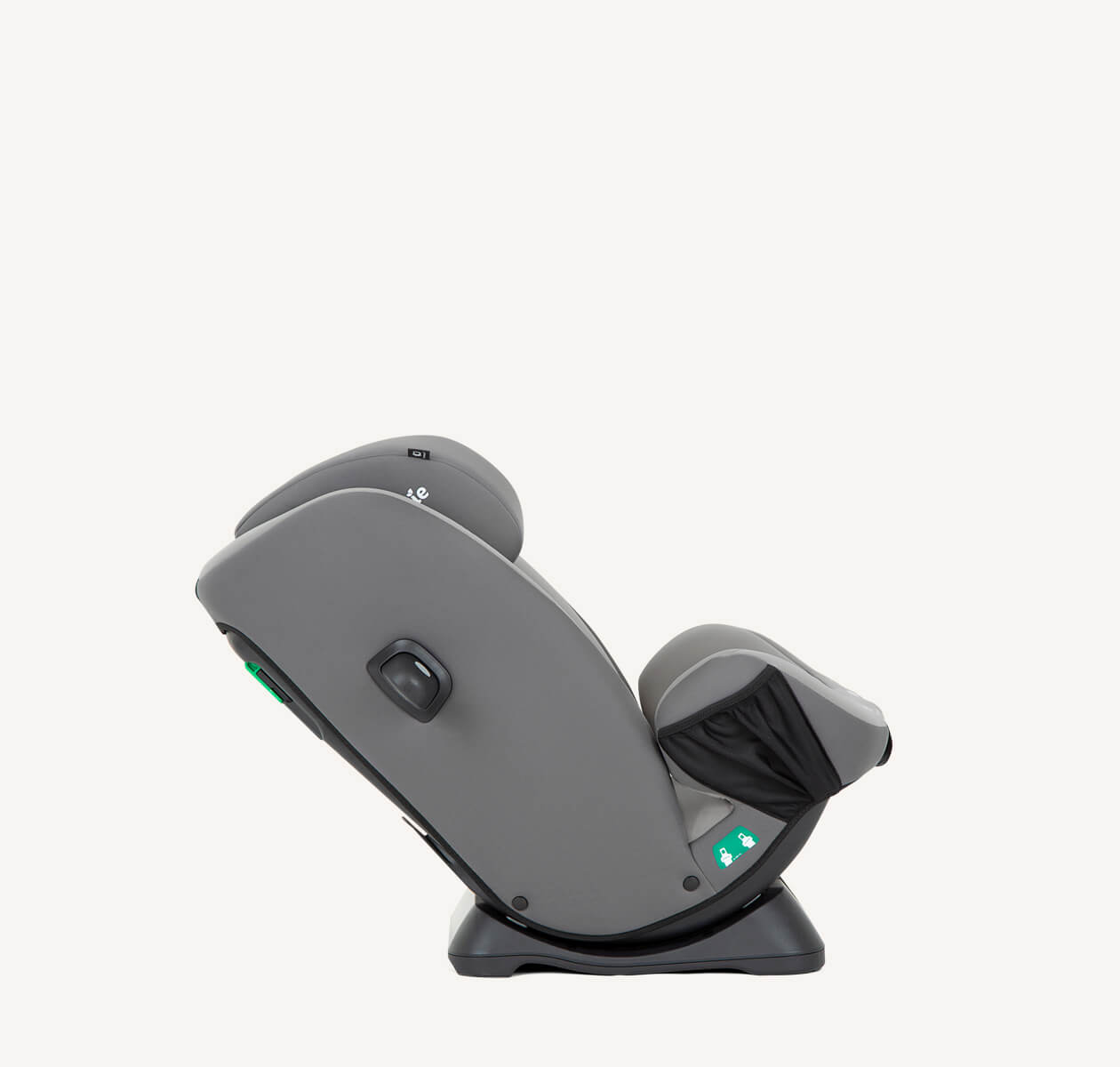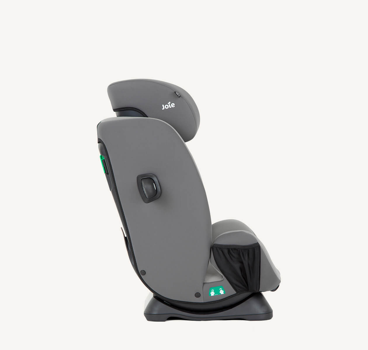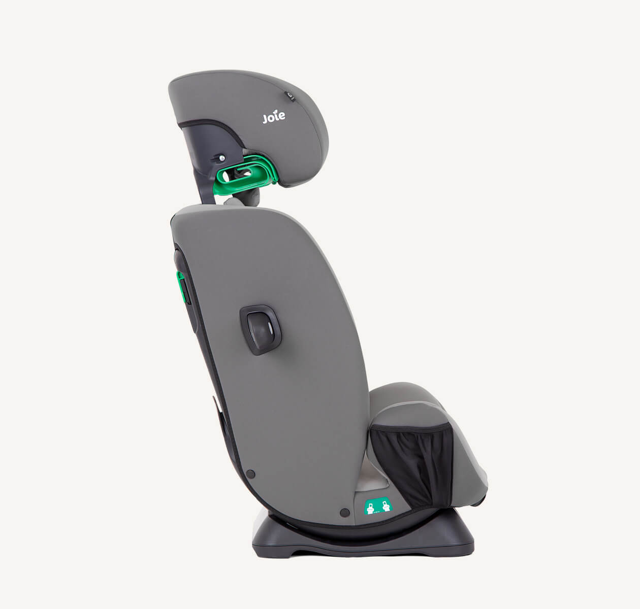Zintegrowany schowek w oparciu fotelika pozwala wygodnie schować uprząż, gdy fotelik jest już używany w trybie fotelika podwyższającego z wysokim oparciem.